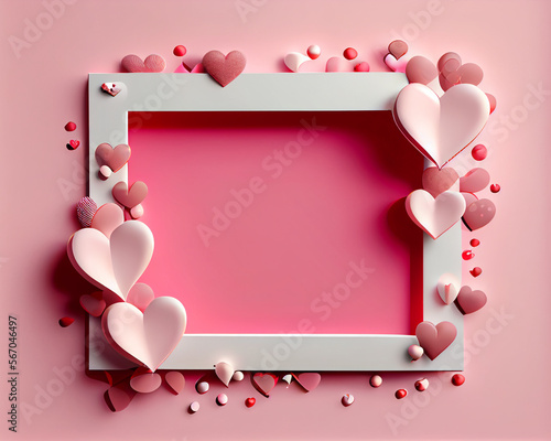 Valentines day or Mothers Day sign banner frame with empty space and festive decoration pink background. Sale background, Pink discount poster with hearts ornament. February 14. Generative Ai.