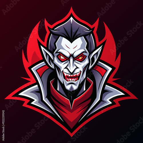 vampire, logotype, character, gaming, design, digital artwork, red eye, fang, fierce, emblem, graphic, modern, aggressive, fantasy, illustration, unique, branding, competition, stylish, iconic, artwork, creative, high-coloured, horror, beauty