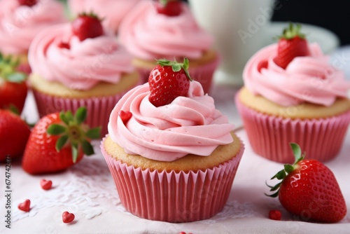 Vanilla cupcakes with strawberry frosting cottage cheese cream