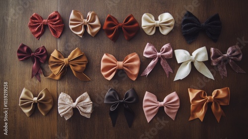Varied Collection of Decorative Bows on Wooden Surface