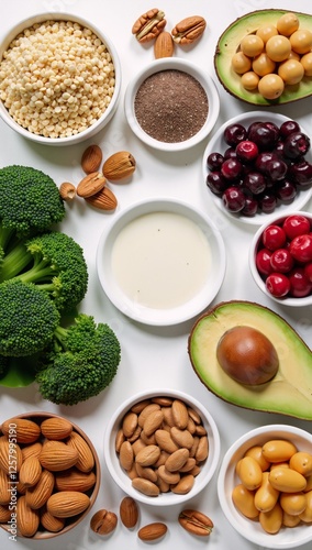 Varied selection of nutritious plant-based foods and fibers for preparing healthy meals Vegan Fiber Rich