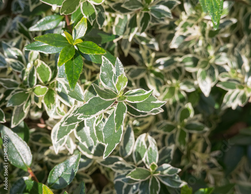 Variegated Bigflower Abelia Leaves in Sunlight Vesalea grandifolia variegata