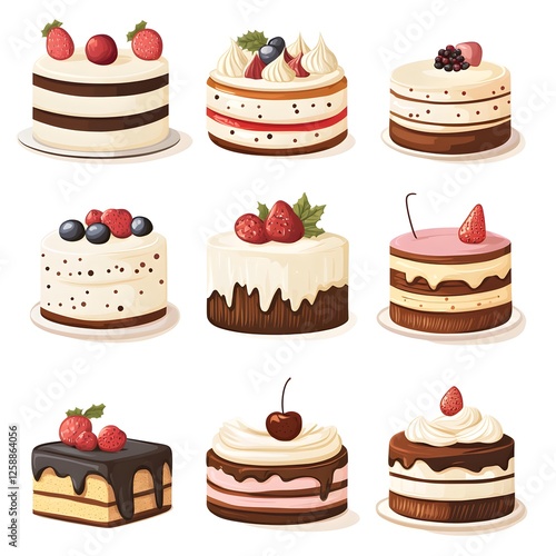 cake, dessert, colourful, grid, strawberry, blueberry, favor, sweet, cream, chocolate, celebration, pastry, baking, fruit, layer, party, decoration, vanilla, raspberry, epicure, treat, confection, whipped cream, cherry, cream cheese, festive, bakery, indulgence, homemade, sugary, delicacy, classic, rich, texture, round, slice, presentation, fresh, variety, design, seasonal, appetising, creativity, culinary, confectionery, birthday