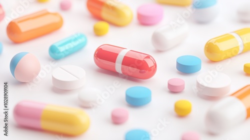 Variety of colorful capsules and tablets arranged artistically on a bright surface, showcasing the diversity in medicinal forms and colors