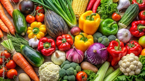 vegetable, food, background, healthy, fresh, organic, raw, agriculture, vitamin, eating, vegetarian, diet, ingredient, nourishment, natural, harvest, green, red, yellow, colours, colourful, variety, assortment, table, wood, rustic, pepper, tomatoes, cucumber, aubergine