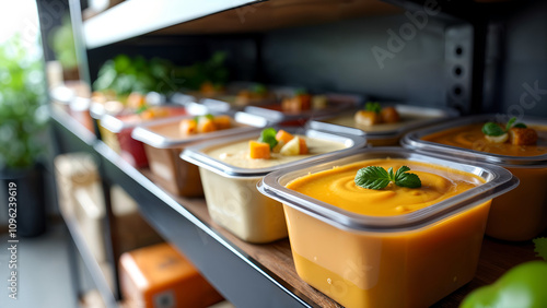 soup, potato, leek, glacé, container, variety, health, favor, modern, kitchen, habit, eating, array, organised, plastic