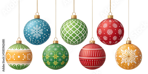Various Christmas balls isolated on transparent background
