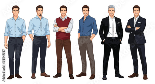 Various Formal and Informal Outfits for Men with Focus on Fashionable Apparel Selection