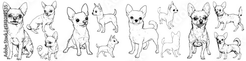 Various illustrations of chihuahuas in different poses and styles showcasing their playful nature and personality traits