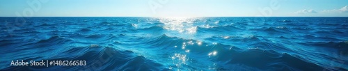 Vast expanse of deep blue ocean meeting the horizon, sunlight reflecting on the waves creating a shimmering effect Perfect for travel, nature, and environmental themes , scenery, aquatic