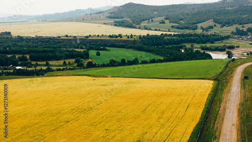 Vast farmlands stretching across the picturesque landscapes of Buryatia, showcasing the harmony of agriculture and nature.