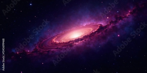 Vast galaxy with vibrant star clusters against inky blackness, stars, dark sky