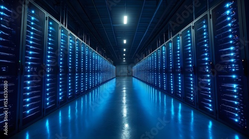datum, server, technology, cyberspace, network, quantum, blue, neon, digital, computer, information, processing, communication, infrastructure, futuristic, innovation, electronic, hardware, energy, storage, illumination, lighting, atmosphere, glow, dark, industrial, interior, architecture, hallway, tunnel, perspective, depth, symmetry, pattern, row, geometry, abstract, minimalist, clean, smooth, efficient, advanced, complex, organised, precise, scale, impressive, powerful, technically