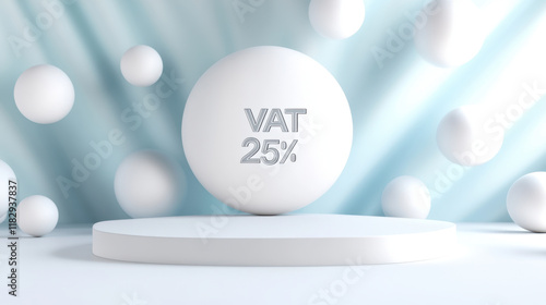 VAT 25% displayed on clean white sphere with floating spheres around