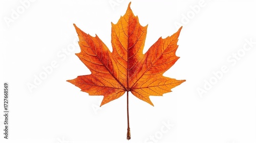 Vbrant orange maple leaf with intricate veins isolated on a clean white background isolated on white background