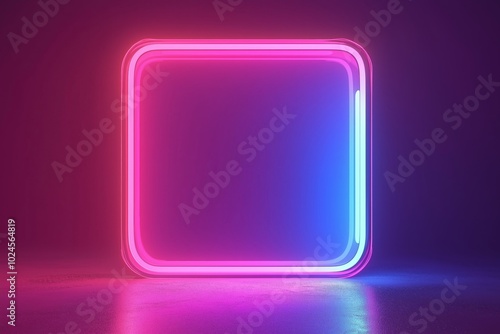 Vector 3d render, square glowing in the dark, pink blue neon light, illuminate frame design. Abstract cosmic vibrant color backdrop. Glowing neon light. Neon frame with rounded corners