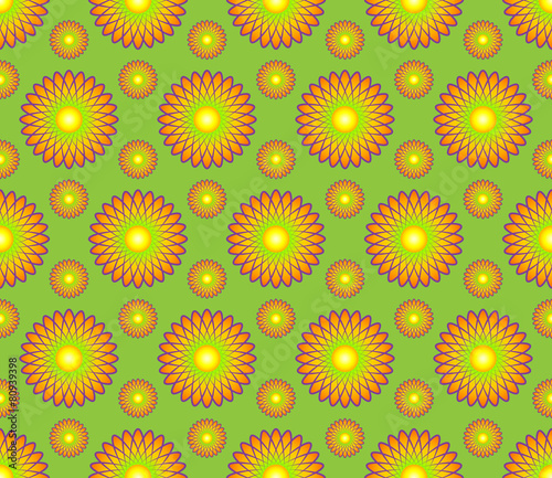 pattern, seamless, vector, floral, abstract, art, flower, green, wallpaper, decoration, orange, design, illustration, retro, paper, background, summer, yellow, nature, fabric, vintage, ornate, textile, spring, decor, ornament, ornamental, series, repetition, shape, swirl