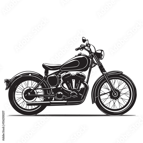 motorcycle, vintage, classic, bike, black, white, isolated, background, illustration, design, graphic, silhouette, transport, vehicle, machine, engine, metal, chrome, speed, power, retro, style, art, drawing, rider, road, freedom, adventure, travel