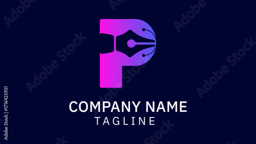 letter, logotype, pen, nib, writing, brand, business, creative, design, font, alphabet, type, graphic, symbol, mark, identity, company, corporate, modern, professional, art, artistic, element, signs, abstract, shape, concept, gradient, purple, blue, technology, digital, network, connection, communication, cyberspace, web, code, software, datum, information, solution, innovation, idea, futuristic, vector