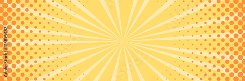 Vector background in comic book style with stripes and halftone. Retro pop art design. Long horizontal banner.