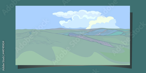 terrace, sidewalk, nobody, sky, outside, exterior, symbol, concept, line, picture, horizon, adventure, horizontal, natural, environment, panorama, field, sale, fashion, tour tourism, banner, cloud, land, green, season, spring, art, summer, mountain, travel, grass, scene, blue, hill, graphic, landscape, design, nature, vector, background