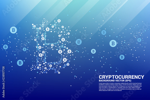 Vector bitcoin icon from Polygon dot connect line. Concept for cryptocurrency technology and financial network connection.