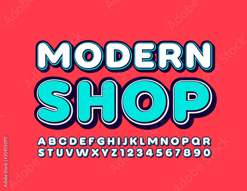 Vector bright banner Modern Shop with Trendy Alphabet Letters and Numbers. 3D Decorative Font