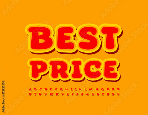 Vector bright promo sign Best Price. Creative sticker Font. Playful style Alphabet Letters and Numbers set