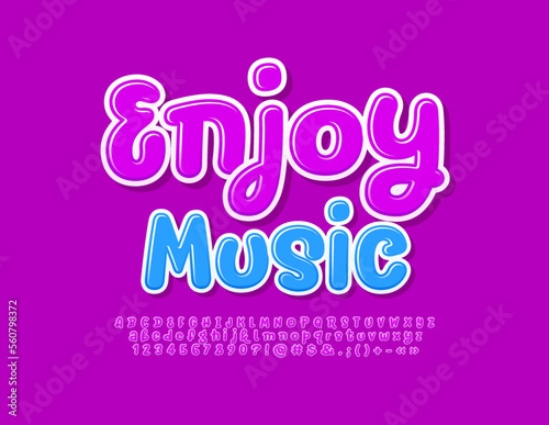 Vector bright Sign Enjoy Music. Modern handwrittem Font. Creative Alphabet Letters and Numbers set