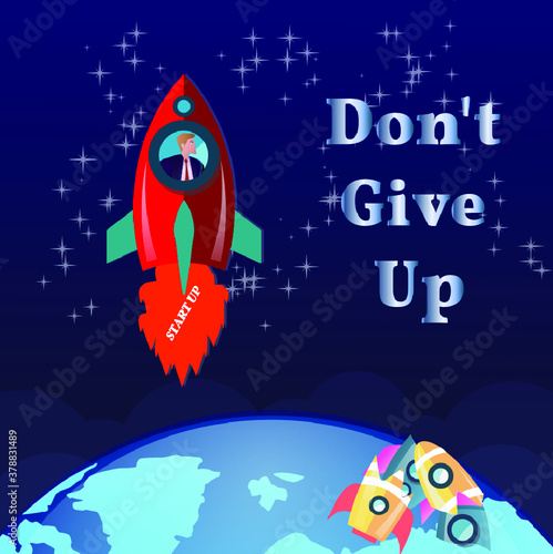 Vector Business concept illustration Don't Give Up Start Up Business person in a space ship