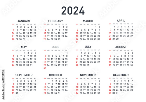 calendar, 2024, business, design, number, schedule, template, vector, jan, december, february, grid, illustration, monthly, simple, sunday, week, year, date, day, diary, month, november, organiser, planner, wall, annual, graphic, monday, new, office, april, july, march, october, event, may, august, june, september, background, layout, season, white, daily