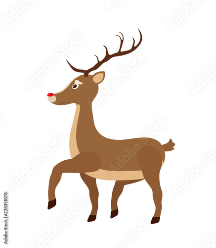Vector cartoon brown reindeer - Christmas symbol