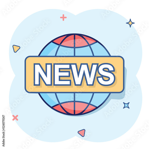 Vector cartoon globe news icon in comic style. World news sign illustration pictogram. Newsletter business splash effect concept.
