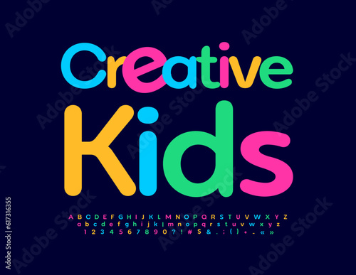 Vector colorful Sign Creative Kids with bright creative Font. Artistic Alphabet set