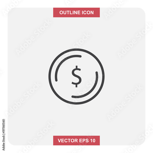 Vector design of outline icon, Dollar coin thin lines stroke symbol for web or mobile element.