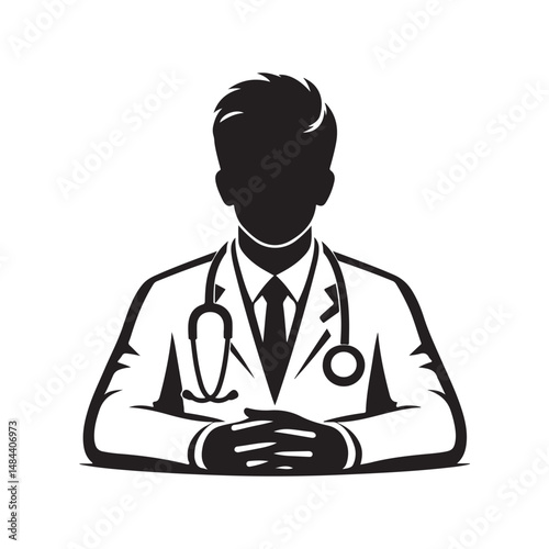 Vector Doctor Silhouette Medical Illustration, Vector Doctor Silhouette Black and White Illustration, Doctor Vector Icon Medical Worker Concept .