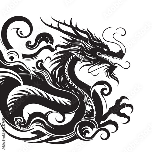 reptile, dragon, illustration, animal, vector, fantasy, mythology, chinese new year, asian culture, chinese culture, concept, flames, flying, luck, success, symbol, 2012, clip art, patriotism, prosperity, strength, tattoo, color image, craft, style, art, blazonry, culture, paper, decoration, ancient