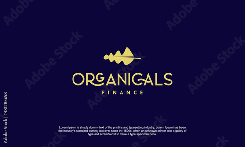 vector graphic illustration logo design for pictogram, combination organic leaf, mountain and chart financial with gold color