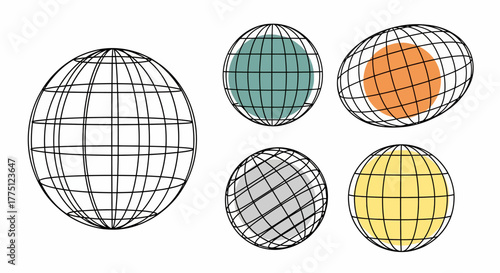 Vector Graphics of Global Sphere Conceptual Icon Designs and World Grid Illustrations