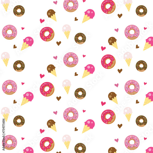 Vector hand drawn donuts and ice cream seamless pattern food background
