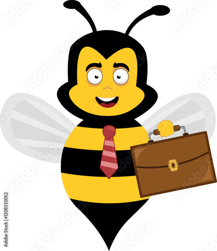 vector illustration character bee insect cartoon, with a neck tie and office briefcase, as an employee or worker