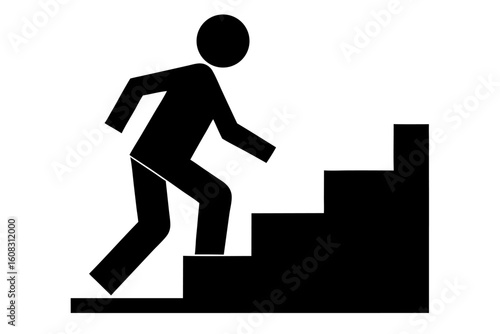 Vector illustration of a black silhouette icon of a businessman running on stairs, symbolizing success and fitness