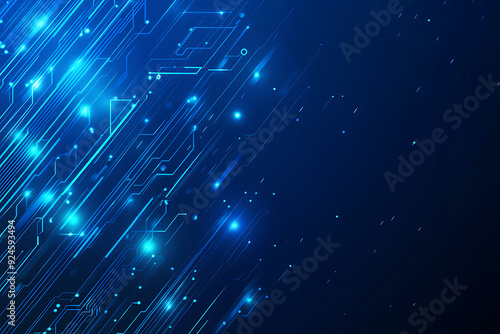 Vector illustration of a blue circuit board background featuring abstract digital tech patterns, with ample space for text or titles.