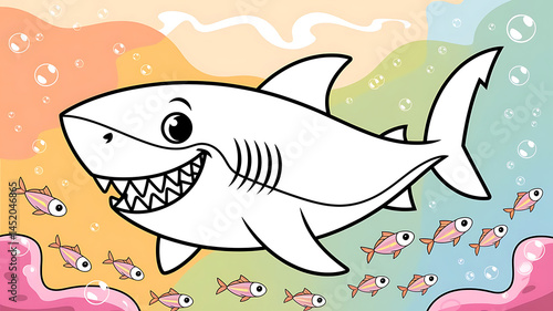 shark, fish, illustration, sea, underwater, cartoon, bubble, horizontal, no people, swimming, color image, undersea, humor, animal, vector, water, anger, displeased, furious, vignetting, biting, smiling, fun, german, act, many-coloured, ocean life, wading, clip art, colours, cruel, fear, funky, shadow, staring, surprise, variation, watching