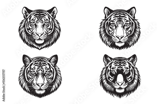 tiger, head, silhouette, vector, illustration, majestic, animal, wildlife, wild, cat, felino, roaring, predator, graphic, design, logotype, icon, symbol, emblem, mascot, nature, power, strength, art, abstract, creative, modern, minimalist, tribal, tattoo, beast, hunter, jungle, safari, continent, danger, isolated, black, white, concept, simple, contour, animal