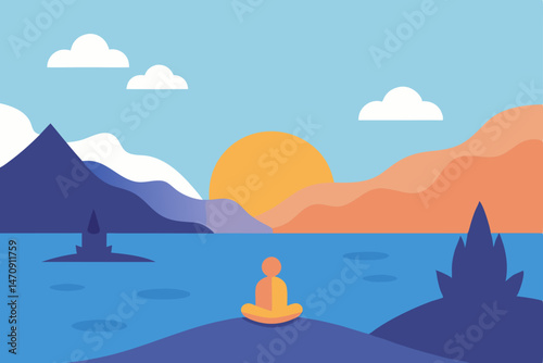 sea, sky, landscape, water, vector, illustration, nature, ocean, mountain, summer, beach, sun, snow, winter, tree, travel, boat, cloud, cloud, wave, design, mountain, wave, river, land