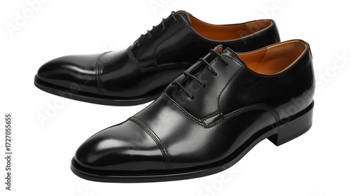 Vector illustration of a pair of classic black captoe oxford dress shoes isolated on transparent background, showcasing fine craftsmanship and elegant design for formal occasions