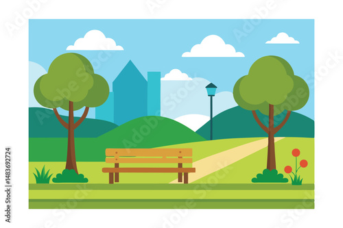 landscape, sky, nature, tree, grass, summer, vector, field, spring, cloud, sun, illustration, meadow, green, hill, cartoon, cloud, flower, land, farm, hill, forest, rural, countryside, day