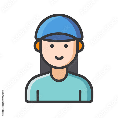 vector, illustration, woman, girl, blue, cap, hat, portrait, smile, face, avatar, icon, symbol, user, profile, cartoon, casual attire, young, character, design, flat, graphic, person, isolated, black, feminine, female, head shot, simple, modern, digital, art, drawing, rounded, outline, cheerful, happy, youth, teenage, student