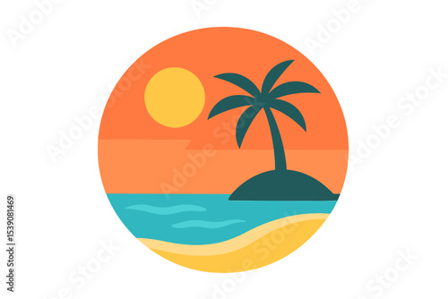 Vector illustration of circular beach icons for logo design and island theme